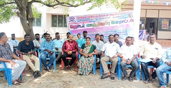 மாவட்ட பொருளாளர், பார்த்திபன் மாவட்ட அமைப்பு செயலாளர், புருஷோத்தமன் வட்ட செயலாளர்,S . உதயகுமார் வட்ட பொருளாளர் கலந்து கொண்டு போராட்டம் நடைபெற்றது இதில் ஆறு அம்ச கோரிக்கைகளை முன்னிறுத்தி 50 க்கும் மேற்பட்ட கிராம நிர்வாக அலுவலர்கள் தொடர் காத்திருப்பு போராட்டத்தில் ஈடுபட்டு வருகின்றனர்