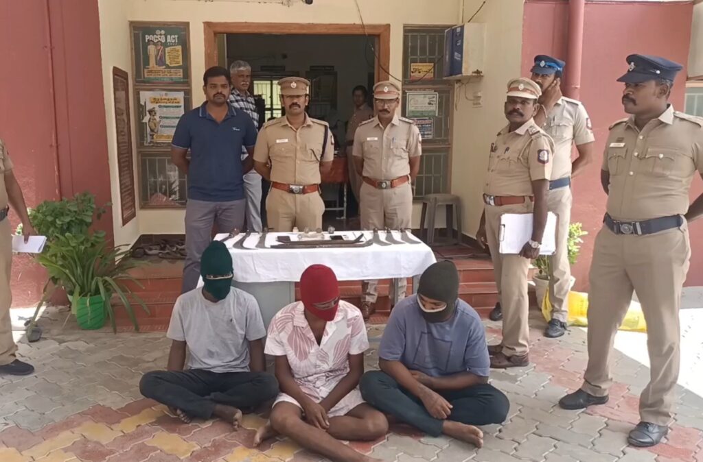 அரிவாள்,கத்தி,சிறிய வகையிலான கடப்பாரை போன்ற பயங்கர ஆயுதங்களுடன் சுமார் ஆறு சவரன் தங்க நகை மற்றும் 20 ஆயிரம் ரொக்கம் ஆகியவற்றையும் போலிசார் பறிமுதல் செய்தனர்.விசாரணைக்கு பின் நீதிமன்றத்தில் ஆஜர்படுத்தி சிறையில் அடைத்தனர்.