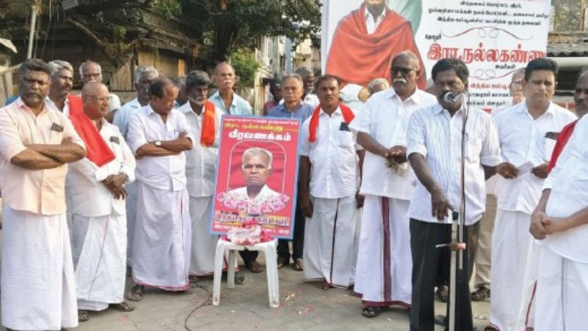 ராமநாதபுரம் அரண்மனை முன்பு, விடுதலைப் போராட்ட வீரரும், தியாக சீலரும், தகைசால் தமிழர் விருது பெற்றவருமான ஆர்.நல்லகண்ணு மறைவுக்கு, இந்திய கம்யூனிஸ்ட் கட்சியின் சார்பில் மாவட்டச் செயலாளர் என்.எஸ்.பெருமாள் தலைமையில் உணர்ச்சிகரமான புகழஞ்சலி கூட்டம் நடைபெற்றது. ஒரு நூற்றாண்டு கால பொதுவாழ்விற்குச் சொந்தக்காரரான நல்லகண்ணு, தமிழக அரசியலில் எளிமைக்கும், நேர்மைக்கும் இலக்கணமாகத் திகழ்ந்தவர். அவரது மறைவு தமிழகத்திற்கு ஈடுசெய்ய முடியாத பேரிழப்பாகக் கருதப்படும் நிலையில், ராமநாதபுரத்தில் நடைபெற்ற இந்த இரங்கல் கூட்டத்தில் அனைத்துக் கட்சியினரும் சாதி, மத பேதமின்றித் திரண்டு வந்து மலர் தூவி மரியாதை செலுத்தினர்.