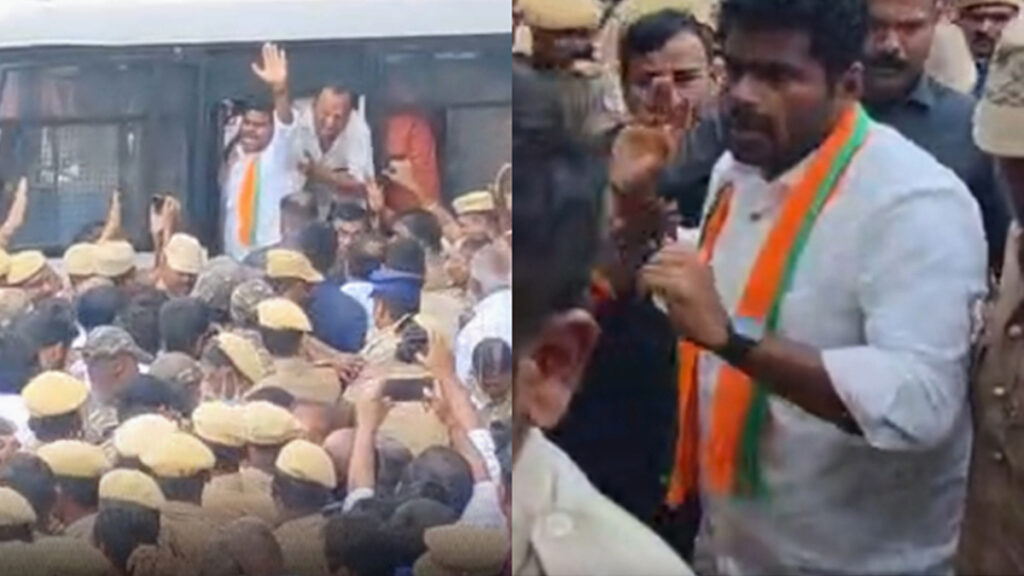 போராட்டத்தில் பங்கேற்க வந்த அண்ணாமலையை போலீசார் தடுத்து நிறுத்தி கைது செய்தனர். அவருடன் சில பாஜக நிர்வாகிகளும் கைது செய்யப்பட்டுள்ளனர். இதனைத் தொடர்ந்து அப்பகுதியில் போலீசார் குவிக்கப்பட்டு பாதுகாப்பு பலப்படுத்தப்பட்டுள்ளது.