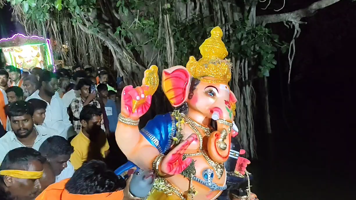 தரங்கம்பாடி அருகே விநாயகர் சதுர்த்தியை முன்னிட்டு விநாயகர் சிலைகள் ஊர்வலமாக எடுத்து வரப்பட்டு நீர் நிலைகளில் கரைப்பு.