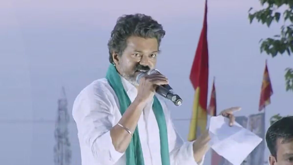 தமிழக வெற்றிக் கழகத் தலைவர் விஜய், திருவாரூரில் நடைபெற்ற தேர்தல் பரப்புரையில், முதல்வர் எம்.கே. ஸ்டாலினை கடுமையாக விமர்சித்தார்.