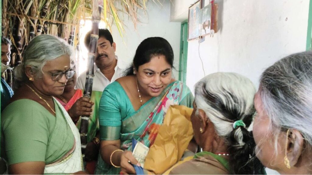 தமிழகம் முழுவதும் பொங்கல் பண்டிகையைச் சிறப்பாகக் கொண்டாடும் வகையில், முதலமைச்சர் மு.க.ஸ்டாலின் உத்தரவின் பேரில் பொங்கல் பரிசுத் தொகுப்பு மற்றும் ரூ. 3,000 ரொக்கப்பணம் வழங்கும் திட்டம் இன்று முதல் தீவிரமாக நடைபெற்று வருகிறது. இதன் ஒரு பகுதியாக, மேட்டுப்பாளையம் அருகே உள்ள குமரபுரம் பகுதியில் அமைந்துள்ள நியாயவிலைக் கடையில் பொதுமக்களுக்குப் பொங்கல் பரிசுத் தொகுப்பு வழங்கும் நிகழ்ச்சி நடைபெற்றது. இந்த விழாவில் கோவை மாவட்ட அறங்காவலர் குழு உறுப்பினர் எஸ்.எம்.டி. கவிதா கல்யாணசுந்தரம் சிறப்பு விருந்தினராகக் கலந்துகொண்டு, குடும்ப அட்டைதாரர்களுக்குத் தலா ஒரு கிலோ பச்சரிசி, ஒரு கிலோ சர்க்கரை, ஒரு முழு நீளக் கரும்பு மற்றும் ரூ. 3,000 ரொக்கப்பணம் ஆகியவற்றை வழங்கி விநியோகப் பணிகளைத் தொடங்கி வைத்தார்.