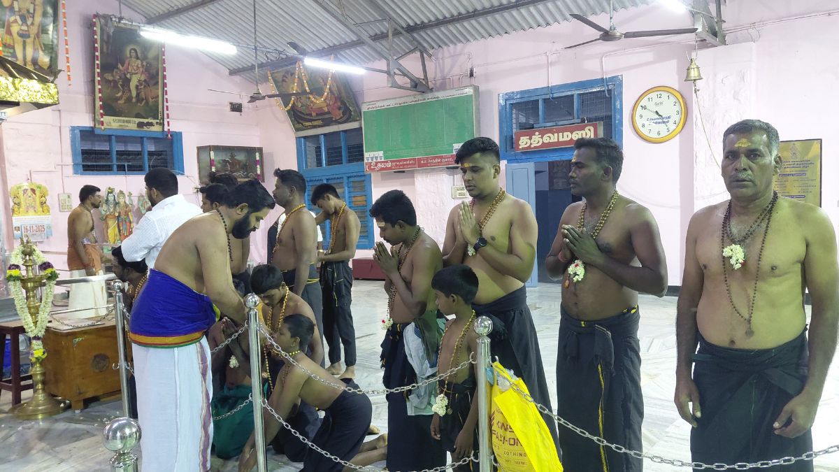 விரதத்தைத் தொடங்குவதற்காக பக்தர்கள் அதிக எண்ணிக்கையில் மாலை, வேட்டி, துண்டு மற்றும் பூஜை பொருட்களை வாங்கக் குவிந்தனர். இதனால், திண்டுக்கல்லில் உள்ள அபிராமி அம்மன் கோவில் வீதியில் பக்தர்களின் கூட்டம் அலைமோதியதுடன், வியாபாரமும் சூடுபிடித்தது. அடுத்த 48 நாட்களுக்கு விரதம் இருக்கும் பக்தர்கள், இருமுடி கட்டிக்கொண்டு சபரிமலை சென்று ஐயப்பனைத் தரிசிப்பார்கள். இந்த விரதக் காலம் முழுவதும், பக்திப் பாடல்கள் மற்றும் சரண கோஷத்துடன் திண்டுக்கல் நகரமே பக்திப் பரவசத்தில் மூழ்கியுள்ளது.