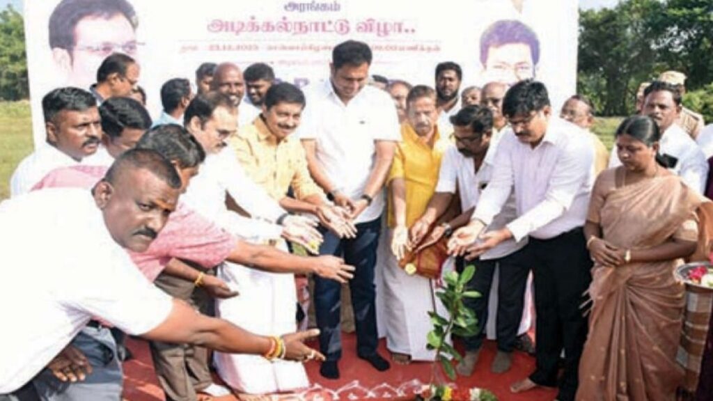 டெல்டா மாவட்டமான திருவாரூரின் முக்கிய நகரமான மன்னார்குடியில், விளையாட்டு வீரர்களின் நீண்டகாலத் தேவையைப் பூர்த்தி செய்யும் வகையில், நவீன வசதிகளுடன் கூடிய புதிய விளையாட்டு அரங்கம் அமைப்பதற்கான பணிகள் அதிகாரப்பூர்வமாகத் தொடங்கியுள்ளன. திருவாரூர் மாவட்டம், மன்னார்குடி நகராட்சிக்கு உட்பட்ட ஆர்.பி. சிவம் நகரில், இளைஞர் நலன் மற்றும் விளையாட்டு மேம்பாட்டுத் துறை மற்றும் தமிழ்நாடு விளையாட்டு மேம்பாட்டு ஆணையம் சார்பில், ‘முதலமைச்சர் சிறு விளையாட்டு அரங்கம்’ அமைப்பதற்கான அடிக்கல் நாட்டு விழா நேற்று சிறப்பாக நடைபெற்றது. தமிழக முதலமைச்சர் அவர்களின் சீரிய வழிகாட்டுதலின்படி, சுமார் 3 கோடி ரூபாய் திட்ட மதிப்பீட்டில் அமையவுள்ள இந்த விளையாட்டு அரங்கிற்குத் தொழில் முதலீட்டு ஊக்குவிப்பு மற்றும் வர்த்தகத் துறை அமைச்சர் டி.ஆர்.பி.ராஜா மற்றும் மாவட்ட ஆட்சியர் வ.மோகனச்சந்திரன் ஆகியோர் அடிக்கல் நாட்டிப் பணிகளைத் தொடங்கி வைத்தனர்.
