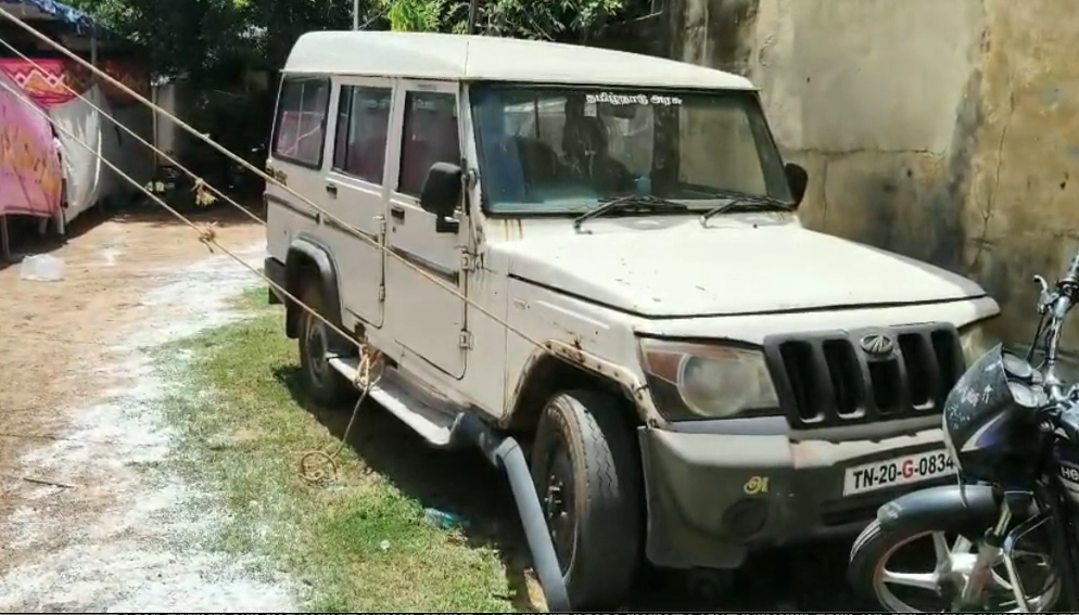 உங்களுடன்   ஸ்டாலின் முகாமிற்காக அமைக்கப்பட்ட பந்தலை பழுதடைந்த வாகனத்தில் கயிறு கட்டி நிறுத்திய அவலம்