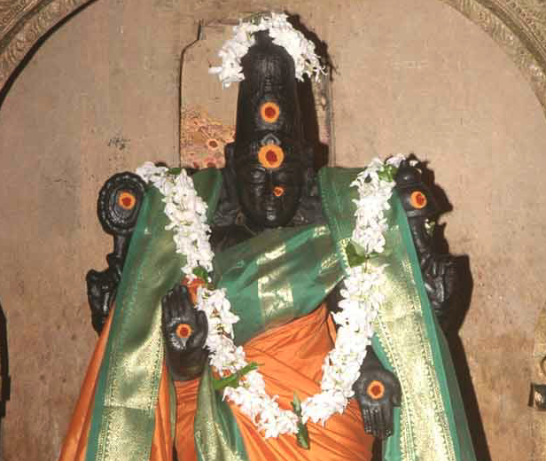 பாம்பு தலையுடனும், மனித உடலுடனும் உள்ள இவர், சிம்ம பீடத்தில் இரு கை கூப்பி சிவசன்னதியை நோக்கி வணங்கிய