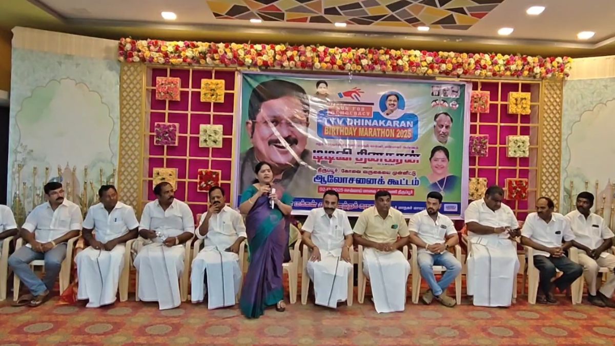 அமமுக பொதுச்செயலாளர் டிடிவி தினகரன் திருப்பூருக்கு வரவிருப்பதை முன்னிட்டு அந்தக் கட்சியில் அரசியல் செயல்பாடுகள் வேகமாகி விட்டன. திருப்பூர், கோவை, ஈரோடு மாவட்ட நிர்வாகிகள் பங்கேற்ற ஆலோசனைக் கூட்டம் திருப்பூர் மாநகர் மாவட்ட செயலாளரும் முன்னாள் மேயருமான அ. விசாலாட்சி தலைமையில் நடைபெற்றது. கூட்டத்தின் முக்கிய நோக்கம் — தினகரன் வருகையையும், அவரது பிறந்தநாளை முன்னிட்டு நடக்க உள்ள மாரத்தானையும் ஒருங்கிணைக்க வேண்டும் என்பதே.