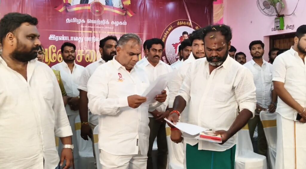 மதுரை மாவட்டம் உசிலம்பட்டி அருகே மெய்யணம்பட்டியில் உள்ள தனியார் மண்டபத்தில் தமிழக வெற்றி கழகத்தின் 2 வது மாநில மாநாடு வரும் 21 ஆம் தேதி மதுரையில் நடைபெற உள்ளது குறித்து மதுரை புறநகர் மேற்கு மாவட்ட நிர்வாகிகளுடனான ஆலோசனை கூட்டம் பொதுச் செயலாளர் என்.ஆனந்த் மற்றும் மாவட்ட செயலாளர்கள் முன்னிலையில் நடைபெற்றது.,