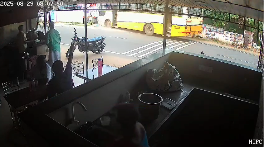 சீர்காழி அருகே புத்தூரில் அரசு பேருந்து மோதி தூய்மை பணியாளர் உட்பட இருவர் உயிரிழப்பு. இருசக்கர வாகனத்தில் வந்தவர் மீது மோதாமல் இருக்க பேருந்து திருப்பியபோது இருவர் மீது மோதிய பேருந்து வீட்டின் சுற்றுச்சுவரை உடைத்துக் கொண்டு வீட்டில் மோதி நின்றது. பதற வைக்கும் சிசிடிவி காட்சி