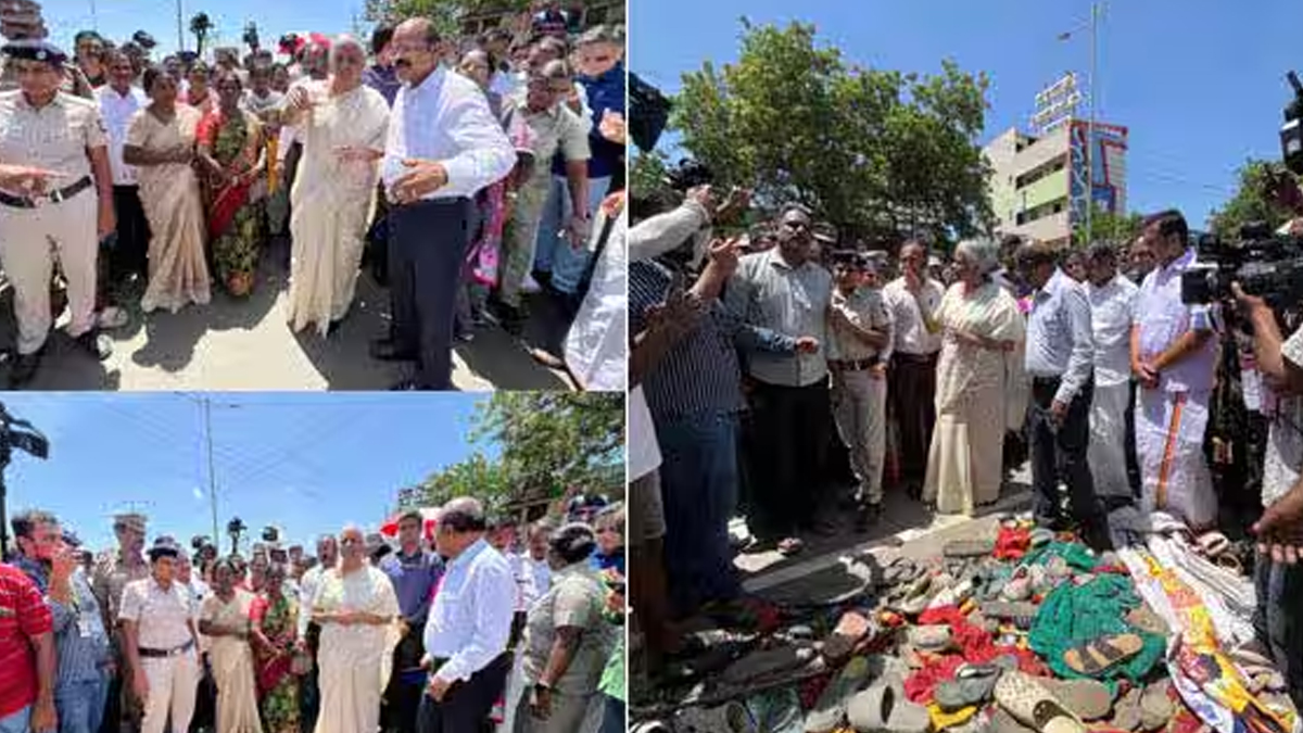 கரூர் : தவெக தலைவர் விஜய் பிரசாரத்தின் போது கரூரில் ஏற்பட்ட கூட்டநெரிசலில் 41 பேர் உயிரிழந்த சம்பவம் தொடர்பாக, மத்திய நிதி அமைச்சர் நிர்மலா சீதாராமன் இன்று நேரில் ஆய்வு மேற்கொண்டார்.