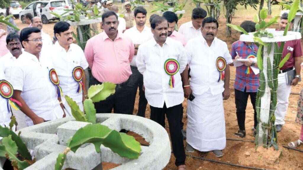 இந்த ஆய்வின் முக்கிய நோக்கமாக, ஜீனூர் பண்ணையில் சுமார் ரூ.25 லட்சம் மதிப்பீட்டில் அமைக்கப்பட்டு வரும் டிராகன் பழத்திற்கான புதிய ‘செயல் விளக்கத் திடல்’ (Demonstration Plot) அமைக்கும் பணிகள் குறித்து ஆய்வு செய்யப்பட்டது. குறைந்த நீர் தேவையைக் கொண்டு அதிக லாபம் தரக்கூடிய டிராகன் பழ சாகுபடியில் விவசாயிகளை ஈடுபடுத்தவும், அவர்களுக்குத் தேவையான உயர்தரக் கன்றுகள் மற்றும் நவீனப் பயிர் மேலாண்மை நுணுக்கங்களைக் கற்றுத் தரவும் இந்தத் திடல் பெரும் உறுதுணையாக இருக்கும் என்று குழுவினர் தெரிவித்தனர். குறிப்பாக, செடிகளுக்கு ஆதாரமாக அமைக்கப்படும் சிமெண்ட் தூண்கள் மற்றும் சொட்டு நீர்ப் பாசன வசதிகள் குறித்து அதிகாரிகள் விளக்கமளித்தனர்.