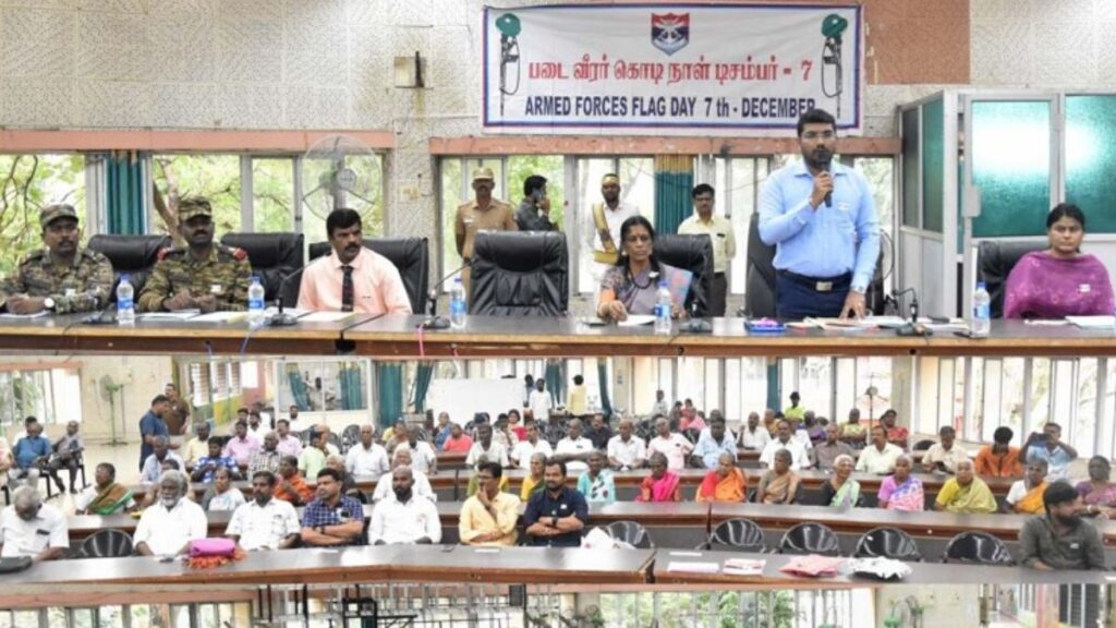 “நம் இராணுவ வீரர்கள் மற்றும் அவர்தம் குடும்பத்தினர்கள் மீது காட்டும் அன்பின் இலக்கணமாகக் கருதி, பொதுமக்கள் கொடிநாள் நன்கொடைகளை அதிக அளவில் வழங்கிட வேண்டும்.” முன்னதாக, இரண்டாம் உலகப்போரில் பணியாற்றிய 100 வயது கடந்த முன்னாள் படைவீரர் திரு. கே. சுந்தரராஜன் அவர்களுக்கு மாவட்ட ஆட்சியர் அவர்கள் பரிசுகள் வழங்கி கௌரவித்தார். இந்நிகழ்ச்சியில், மாவட்ட ஆட்சியரின் நேர்முக உதவியாளர் (பொது) செல்வி ர. கீர்த்தனா மணி, முன்னாள் படைவீரர் நல உதவி இயக்குநர் (கூ.பொ) ச. சுகுணா, ஆர்மி கேண்டீன் மேலாளர் முன்னாள் கேப்டன் கணேஷ் மூர்த்தி உள்ளிட்ட அரசு அலுவலர்கள், முன்னாள் படைவீரர்கள் மற்றும் அவர்தம் குடும்பத்தினர் கலந்துகொண்டனர்.