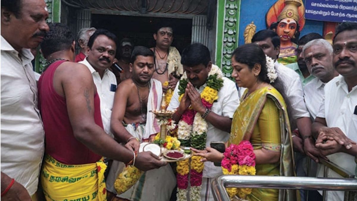 இந்த ஆன்மீக நிகழ்வில் முன்னாள் மக்கள் நல்வாழ்வுத்துறை அமைச்சரும், விராலிமலை சட்டமன்ற உறுப்பினருமான டாக்டர் சி. விஜயபாஸ்கர் மற்றும் ரம்யா விஜயபாஸ்கர் ஆகியோர் சிறப்பு விருந்தினர்களாகக் கலந்துகொண்டு, குத்துவிளக்கேற்றி பூஜையினைத் தொடங்கி வைத்தனர். அப்போது பேசிய முன்னாள் அமைச்சர், “கிராமிய வழிபாட்டு முறைகளும், இதுபோன்ற கூட்டுப் பிரார்த்தனைகளும் நமது கலாச்சாரத்தின் அடையாளங்கள். இத்தனை ஆயிரக்கணக்கான தாய்மார்கள் திரண்டு நின்று ஒளியேற்றுவது விராலிமலைக்கே ஒரு பெரும் ஆன்மீக ஒளியைத் தருகிறது” எனக் குறிப்பிட்டார். இந்த நிகழ்வில் முன்னாள் ஆவின் தலைவர் எஸ். பழனியாண்டி, திருவிளக்கு பூஜை கமிட்டி அமைப்பாளர் ஏ.கே. சுந்தரம் உள்ளிட்ட முக்கிய நிர்வாகிகள் மற்றும் ஊர் பிரமுகர்கள் முன்னிலை வகித்தனர்.