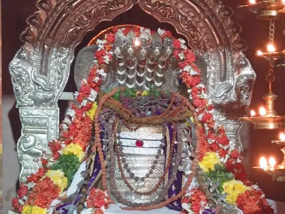 பிரதான கோவிலின் உள்ளே சிவலிங்கம் முழு ருத்திராட்சம் அலங்காரத்துடன் உள்ளது. 22,000 ருத்திராட்சங்கள் கொண்ட கவசம் இது. இங்கு அர்ச்சனையும் ருத்திராட்சம் கொண்டே செய்யப்படுவது இந்தக் கோவிலின் சிறப்பு. ஏக முக ருத்திராட்சத்துடன் தொடங்கி 12 முக ருத்திராட்சத்துடன் முடிக்கப்படுகிறது. மரகத கல் உடைய ஆபரணம் லிங்கத்தை அலங்கரிப்பதால் சூரிய ஒளியுடன் தீபாராதனை காட்டும்போது. கர்ப்பக்கிரகமே ஜொலிக்கிறது.