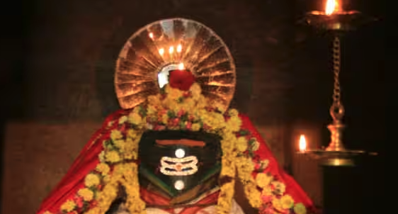 பாம்பு லிங்கத்திலிருந்து மெதுவாக இறங்கி, அபிஷேகப் பாதை வழியாக கோவிலின் ஸ்தல விருக்ஷமான பில்வ மரத்தை நோக்கிச் சென்றது. பின்னர் அது மரத்தின் மீது ஏறி சில வில்வ இலைகளைப் பறித்து மீண்டும் சிவன் சந்நிதிக்குத் திரும்பியது, வில்வ இலைகளை சிவபெருமான் மீது விழுவதற்காக அதன் வாயைத் திறந்தது. நாகப்பாம்பு அதோடு நிற்காமல், கிரகணம் முடியும் வரை அதையே திரும்பத் திரும்பச் செய்து கொண்டே இருந்தது. அதன் அருகே செல்ல முயன்ற ஒவ்வொரு பக்தரையும் பார்த்து பாம்பு சீறியது.