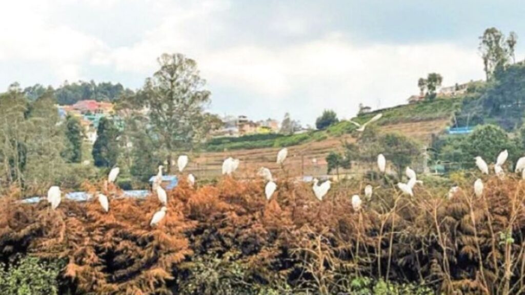 நீலகிரி மாவட்டத்தின் இதயப் பகுதியாக விளங்கும் ஊட்டி நகரின் மையப்பகுதியில் அமைந்துள்ள பழைய ரேஸ்கோர்ஸ் மைதானம், தற்போது இயற்கை ஆர்வலர்கள் மற்றும் சுற்றுலாப் பயணிகளின் சொர்க்கமாக மாறியுள்ளது. ஊட்டியின் முக்கிய அடையாளங்களில் ஒன்றாகத் திகழும் இந்த மைதானம், தற்போது வெள்ளை நாரைகளின் கூட்டத்தால் ஒரு புதிய பொலிவைப் பெற்றுள்ளது. அதிகாலை வேளைகளில், பனிமூட்டம் விலகும் நேரத்தில், நூற்றுக்கணக்கான வெள்ளை நாரைகள் இந்தப் பசுமைப் புல்வெளிகளில் கூட்டம் கூட்டமாக வந்து முகாமிடும் காட்சி, காண்போரை வியப்பில் ஆழ்த்துகிறது.