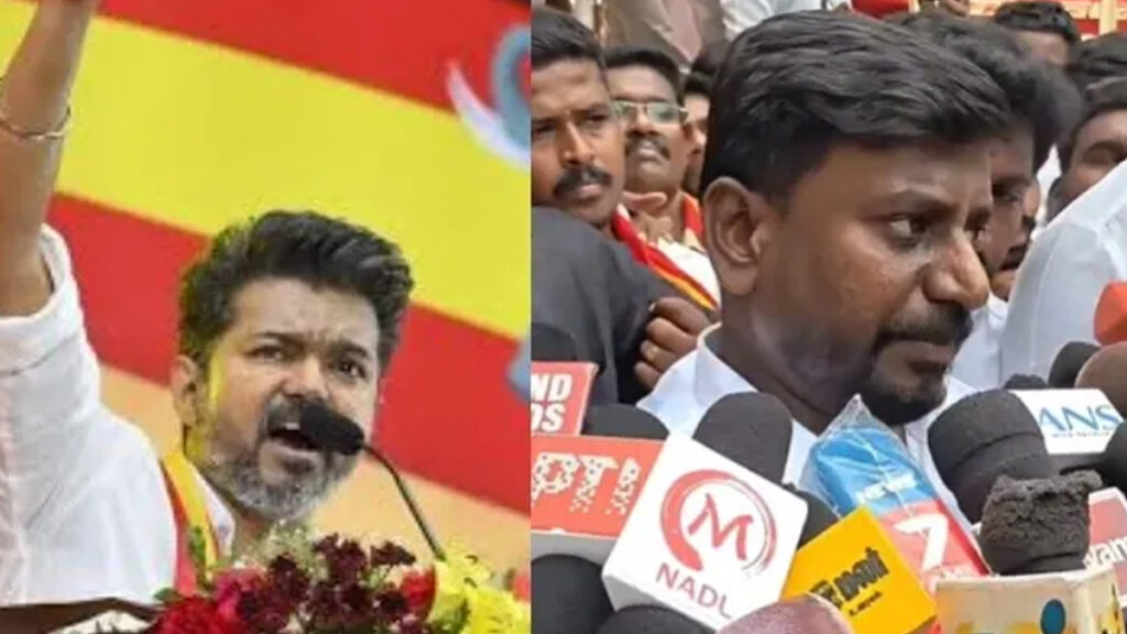 “10 நிமிட வீடியோவால்தான் இந்தியாவே பேசினது” “பேராசிரியரிலிருந்து பொதுமக்கள் வரை எல்லோரும் புரிந்து கொள்ளும்படி விஜய் வெளியிட்ட 10 நிமிட வீடியோவால்தான் ‘சர்வர் பிரச்சினை’ என்று தேர்தல் ஆணையமே ஒப்புக்கொண்டது. அவர் தகவல் தொழில்நுட்பத்தை பயன்படுத்தி, இந்த விஷயத்தை நாடு முழுக்க பேசப்படும் பொருளாக்கினார்.