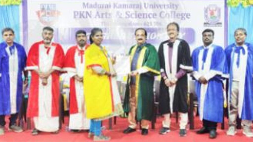 மதுரை மாவட்டம் திருமங்கலத்தில் புகழ்பெற்ற பி.கே.என் கலை மற்றும் அறிவியல் கல்லூரியின் 27-வது பட்டமளிப்பு விழா, கல்லூரி கூட்ட அரங்கில் மிகுந்த உற்சாகத்துடனும், கல்விப் பாரம்பரியம் மாறாத கௌரவத்துடனும் நேற்று சிறப்பாக நடைபெற்றது. எதிர்கால இந்தியாவின் தூண்களாக விளங்கும் மாணவச் செல்வங்களுக்குக் கல்விச் சிறகுகளை வழங்கும் இந்த விழாவினைக் கல்லூரி நிர்வாகக்குழு செயலாளர் (பொ) எம். செல்வம் நாடார் அவர்கள் முறைப்படி துவக்கி வைத்தார். கல்லூரி முதல்வர் டாக்டர். ஆர். கணேசன் அனைவரையும் வரவேற்றுப் பேசுகையில், கல்லூரியின் கல்விச் சாதனைகளையும், மாணவர்களின் அர்ப்பணிப்பையும் பெருமிதத்துடன் சுட்டிக்காட்டினார்.