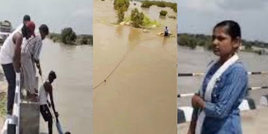 அவரது அலறல் சத்தத்தை கேட்ட உடனே அருகிலுள்ள கிராமவாசிகள் கயிறு வீசி அவரை மீட்டுள்ளனர். அவர்களை காப்பாற்றும் காட்சிகள் வீடியோவாக சமூக ஊடகங்களில் வைரலாகி வருகின்றன.