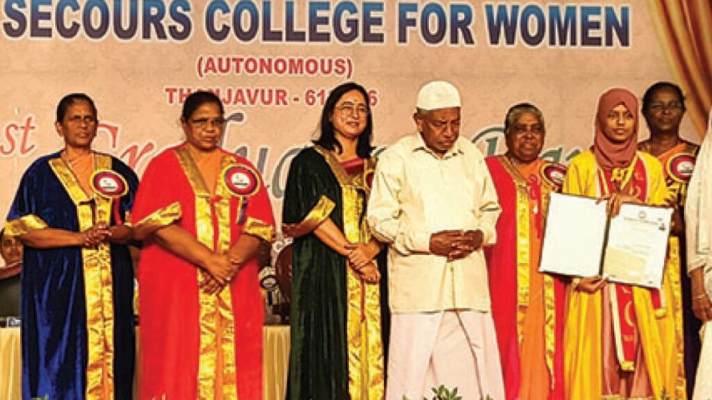 இந்த விழாவில் ஒரு நெகிழ்ச்சியான நிகழ்வாக, அனைத்து மாணவிகளும் தங்களது பட்டமளிப்புச் சான்றிதழ்களைச் சிறப்பு விருந்தினரின் முன்னிலையில், தங்கள் பெற்றோரின் திருக்கரங்களால் பெற்றுக்கொண்டனர். பாரதிதாசன் பல்கலைக்கழகத் தரவரிசைப் பட்டியலில் முதலிடம் பிடித்துத் தங்கப் பதக்கம் வென்ற 4 மாணவிகளுக்கும், தரவரிசையில் இடம் பிடித்த 205 மாணவிகளுக்கும் சிறப்புப் பதக்கங்களும் சான்றிதழ்களும் வழங்கப்பட்டன. மொத்தம் 960 இளங்கலை மாணவிகள் மற்றும் 232 முதுகலை மாணவிகள் என 1,192 பேர் பட்டம் பெற்றுச் சாதனை படைத்தனர். கல்லூரியின் முன்னாள் மாணவியர் சங்கப் பேரவைத் தலைவி சையத் ஆசியா பானு, தான் இக்கல்லூரியில் பயின்ற போது பெற்ற அனுபவங்களை நெகிழ்ச்சியுடன் பகிர்ந்து கொண்டார். இந்நிகழ்வில் கல்வியாளர்கள், பேராசிரியர்கள், மாணவிகள் மற்றும் அவர்களது பெற்றோர் எனப் பெரும் திரளானோர் கலந்துகொண்டு விழாவைச் சிறப்பித்தனர்.