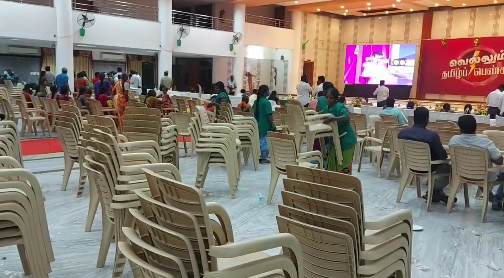 ஜோலார்பேட்டை அருகே நடைபெற்ற வெல்லும் தமிழ் பெண்கள் நிகழ்ச்சி துவங்குவதற்கு முன்பே வளாகத்தை விட்டு வெளியேறிய பெண்கள். மண்டபமே வெறிச்சோடி காணப்பட்ட நிலையில் முதலமைச்சர் பேசிக்கொண்டிருந்த போதே நாற்காலிகள் அடுக்கப்பட்ட அவலம்.