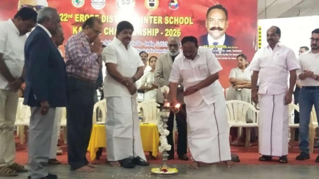 இந்த விழாவில் கோபி வழக்கறிஞர் ஜி.ஆர்.பாலசுப்பிரமணியம், போகி நாராயணா பள்ளி ஏஜிஎம் வழக்கறிஞர் எம்.எல்.விஜய் ஆனந்த், ஈரோடு மாவட்ட கராத்தே சங்க செயலாளர் எம்.குமார் உள்ளிட்ட முக்கியப் பிரமுகர்கள் கலந்துகொண்டு சிறப்பித்தனர். விழாவின் ஒரு பகுதியாக, தமிழ்நாடு மற்றும் புதுச்சேரியைச் சேர்ந்த 17 கராத்தே நடுவர்களுக்கு அவர்களின் நேர்மையான பணிகளைப் பாராட்டி கௌரவ விருதுகள் வழங்கப்பட்டன. ஈரோடு மாவட்டத்தைச் சேர்ந்த 70-க்கும் மேற்பட்ட பள்ளிகளில் இருந்து வருகை தந்திருந்த ஆயிரத்திற்கும் மேற்பட்ட கராத்தே மாணவ, மாணவிகள் தங்களது தற்காப்புக் கலைத் திறமைகளைச் செயல்விளக்கம் செய்து காண்பித்தனர். மாணவர்களின் பெற்றோர்கள் பெருந்திரளாகக் கலந்துகொண்டு தங்களது குழந்தைகளின் வீர விளையாட்டுகளைக் கண்டு மகிழ்ந்தனர். தற்காப்புக் கலை என்பது வெறும் விளையாட்டு மட்டுமல்ல, அது ஒரு ஒழுக்கமான வாழ்வியல் முறை என்பதைப் பறைசாற்றும் விதமாக இந்த 22-ஆம் ஆண்டு விழா அமைந்தது.